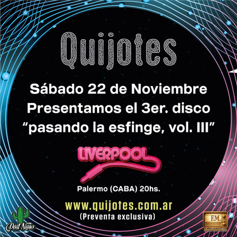 Quijotes propone canciones en castellano con lírica poética, integrando variedad rítmica y armónica. La consigna se ve reflejada en su primer y segundo disco de estudio, publicados en 2022 (Pasando la Esfinge. vol I) y 2023 (Pasando la Esfinge. vol II). Será un recorrido por toda la discografía, con una puesta en escena que celebrará el camino recorrido.